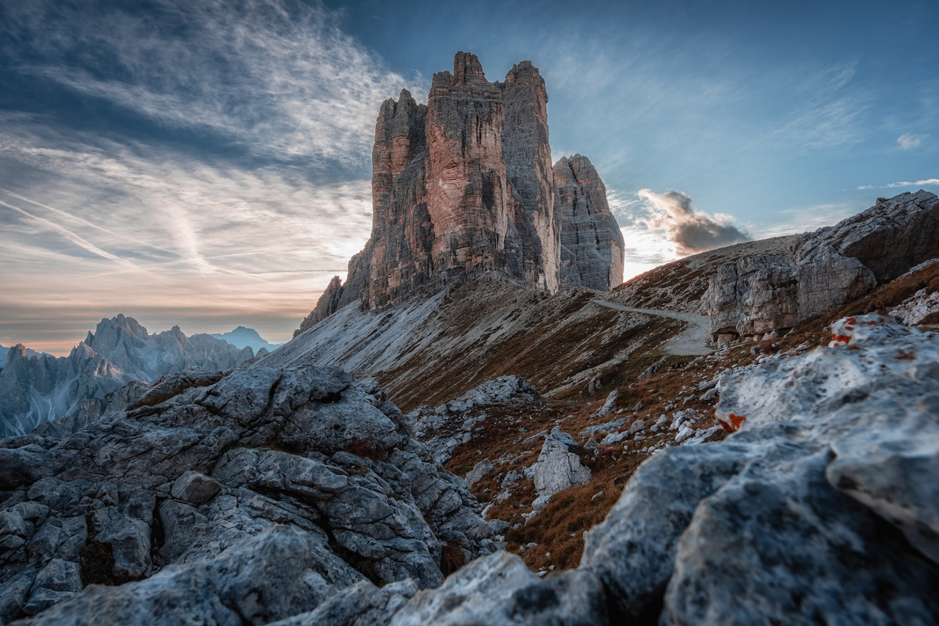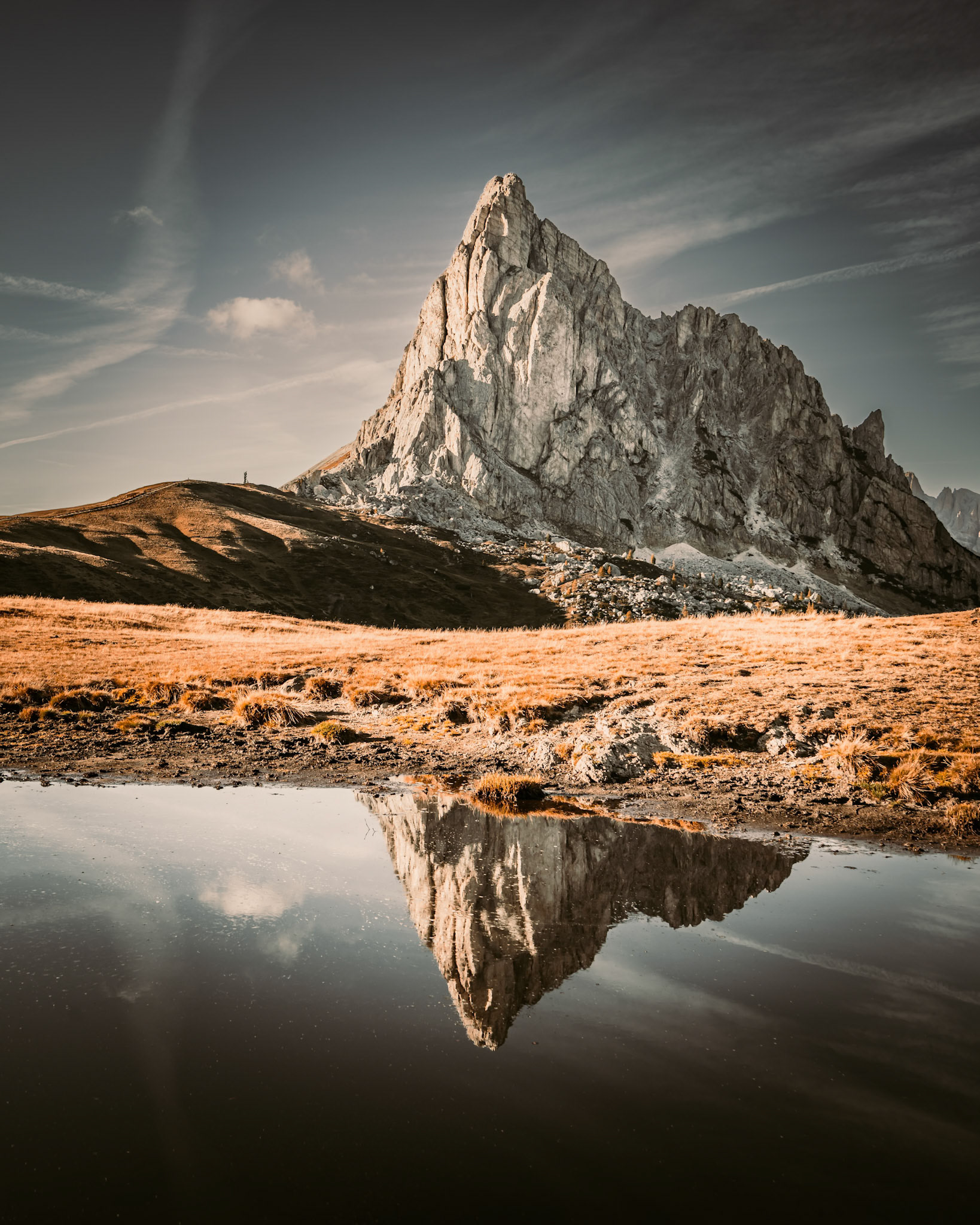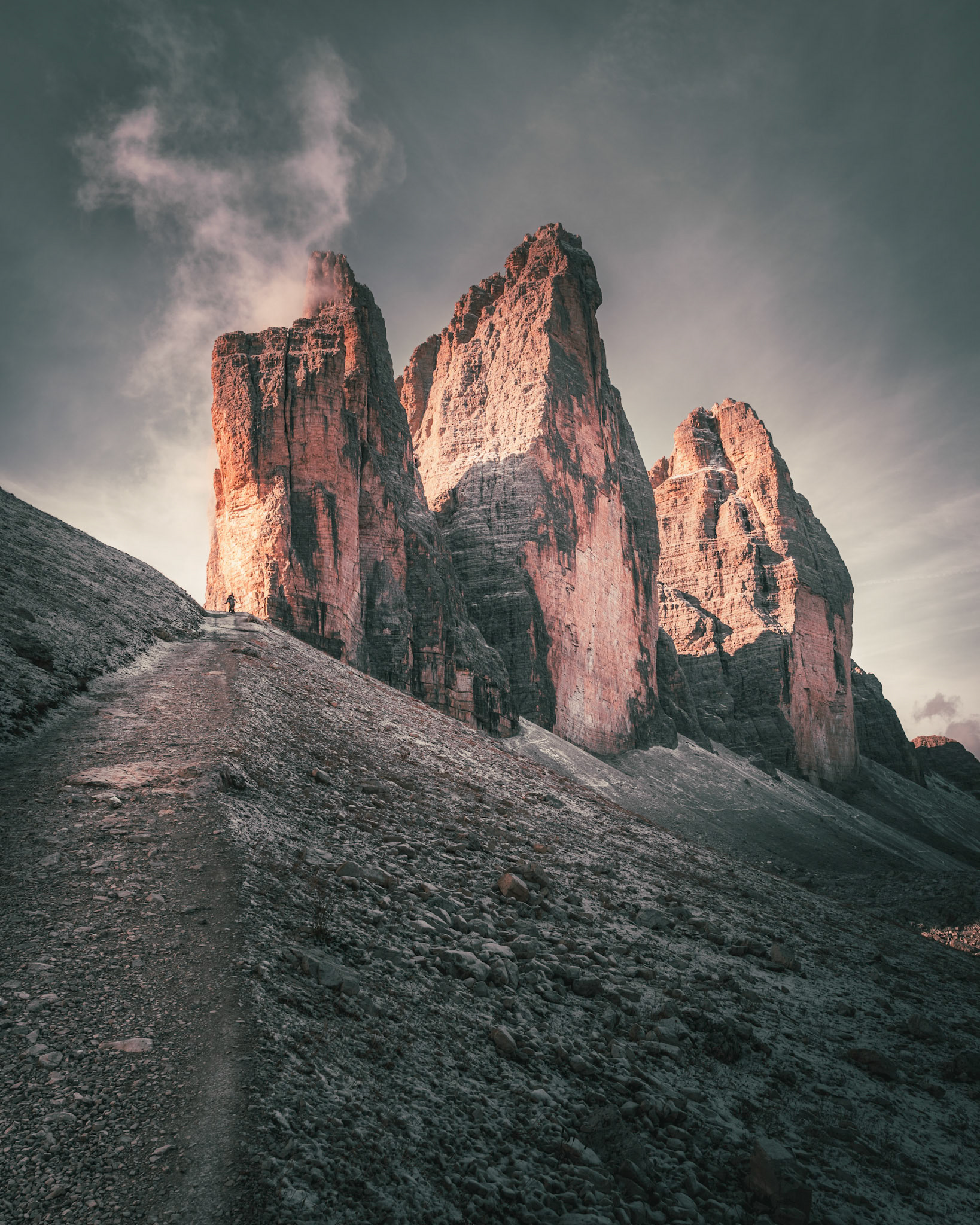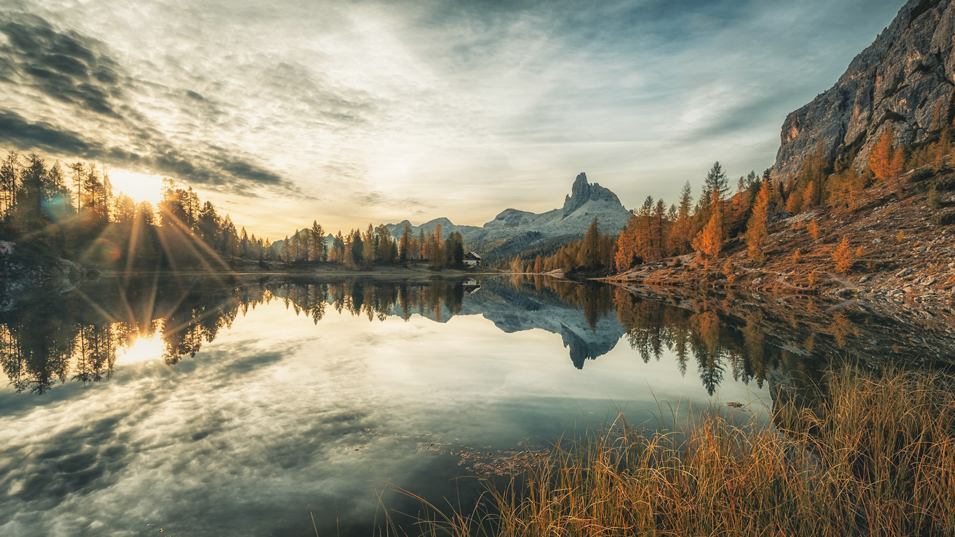 Im Hintergrund strahlt der Sonnenaufgang den Watzmann an.