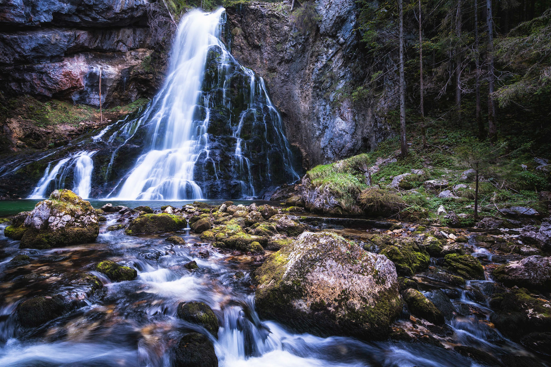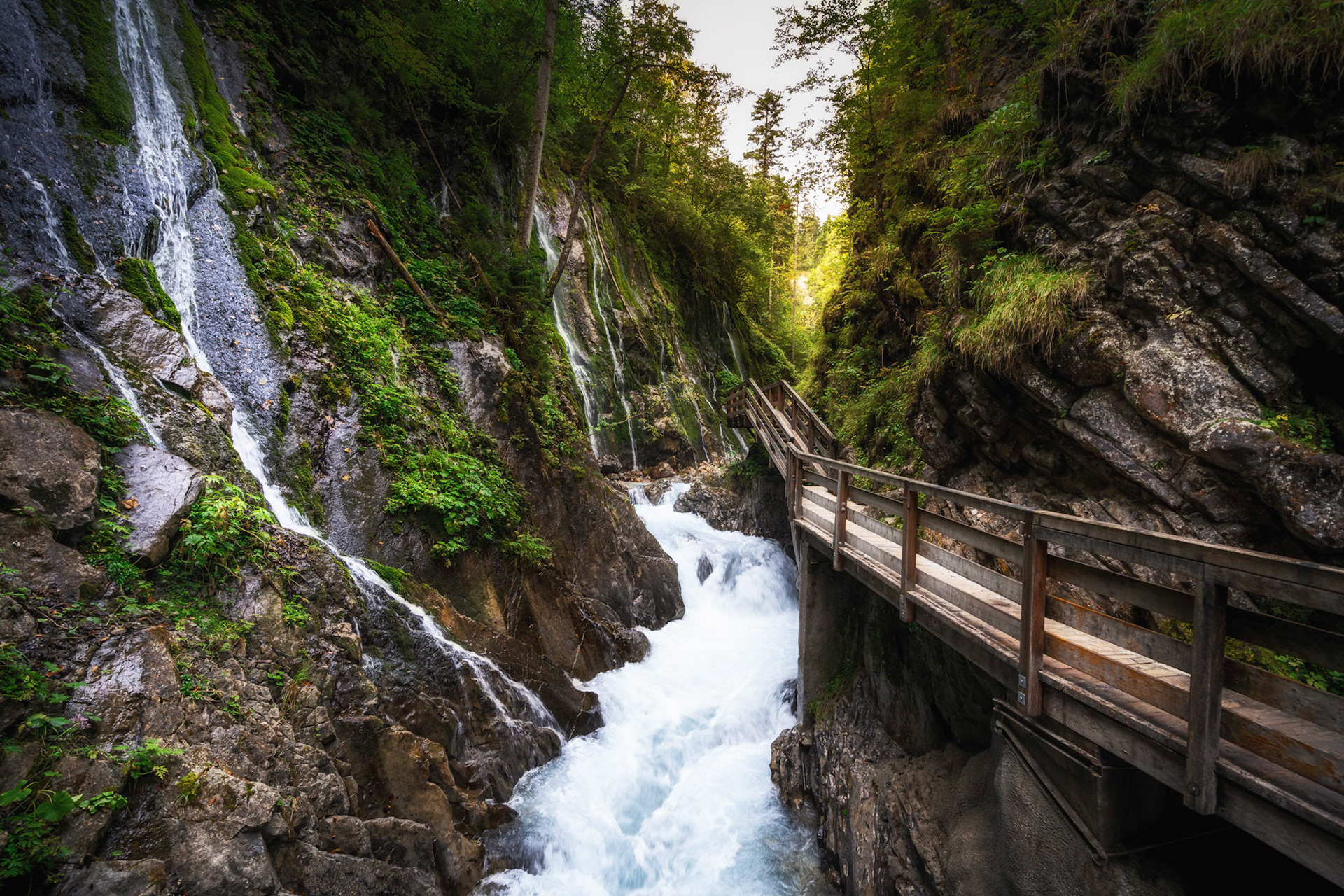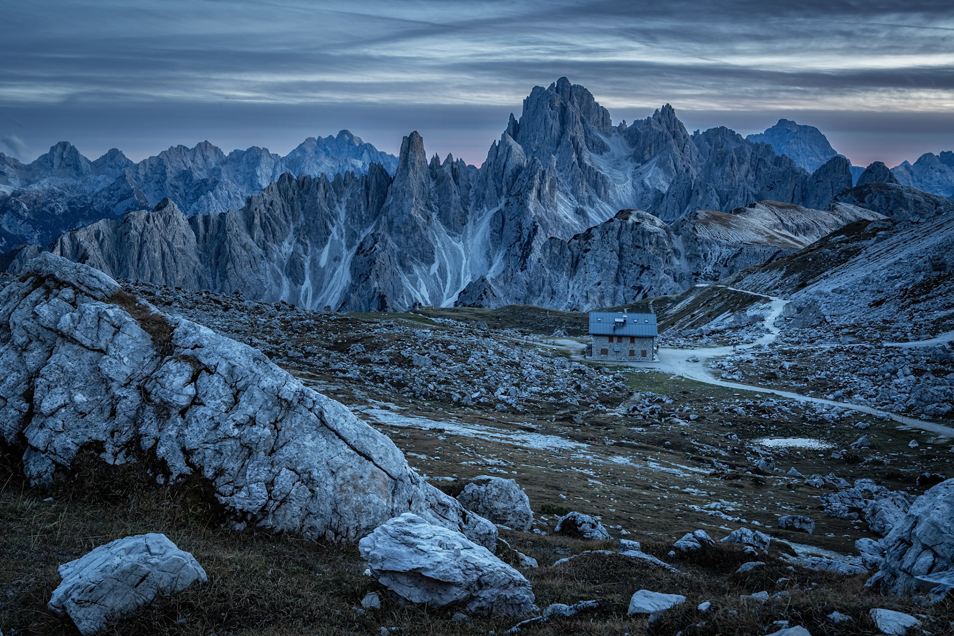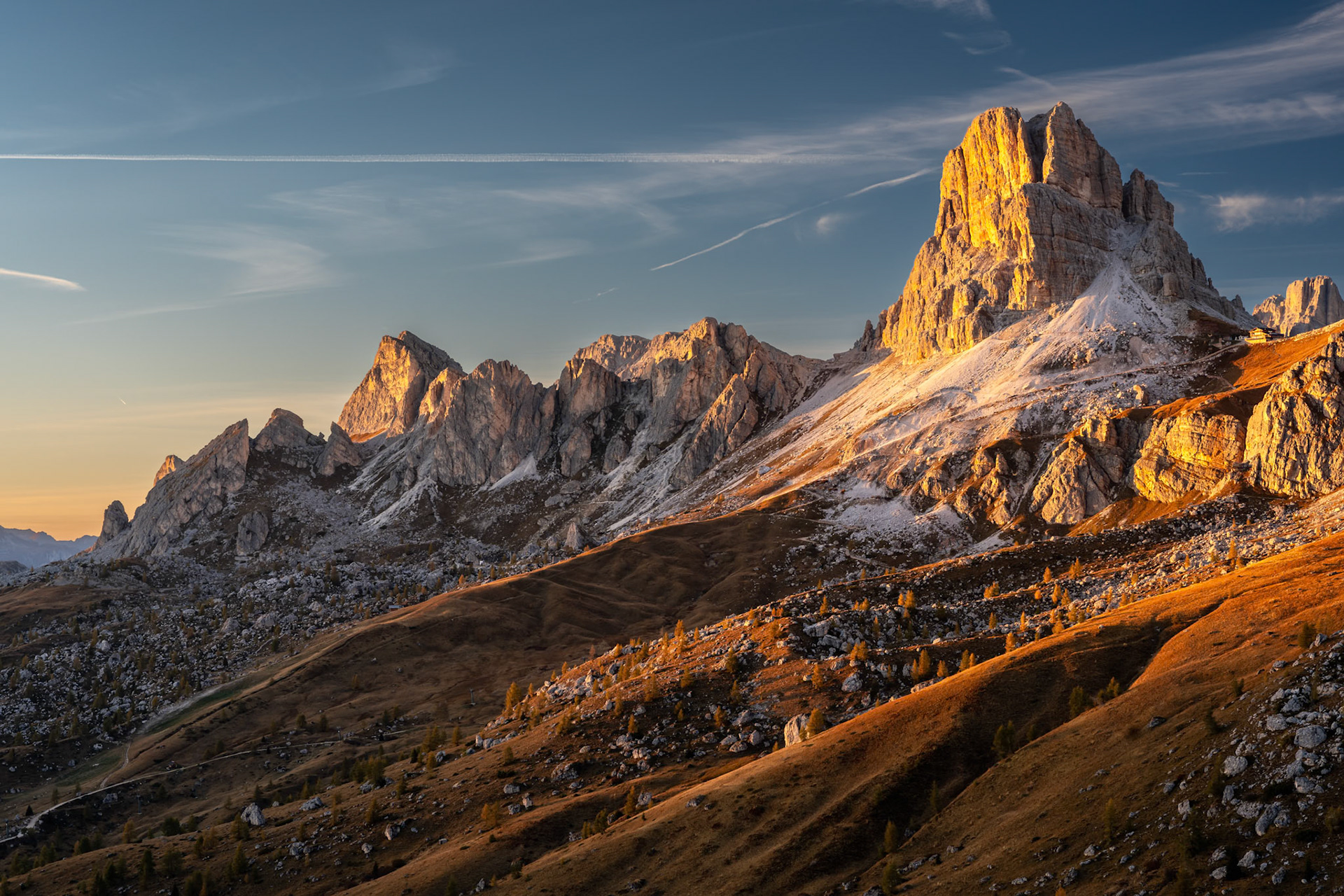 Im Hintergrund strahlt der Sonnenaufgang den Watzmann an.